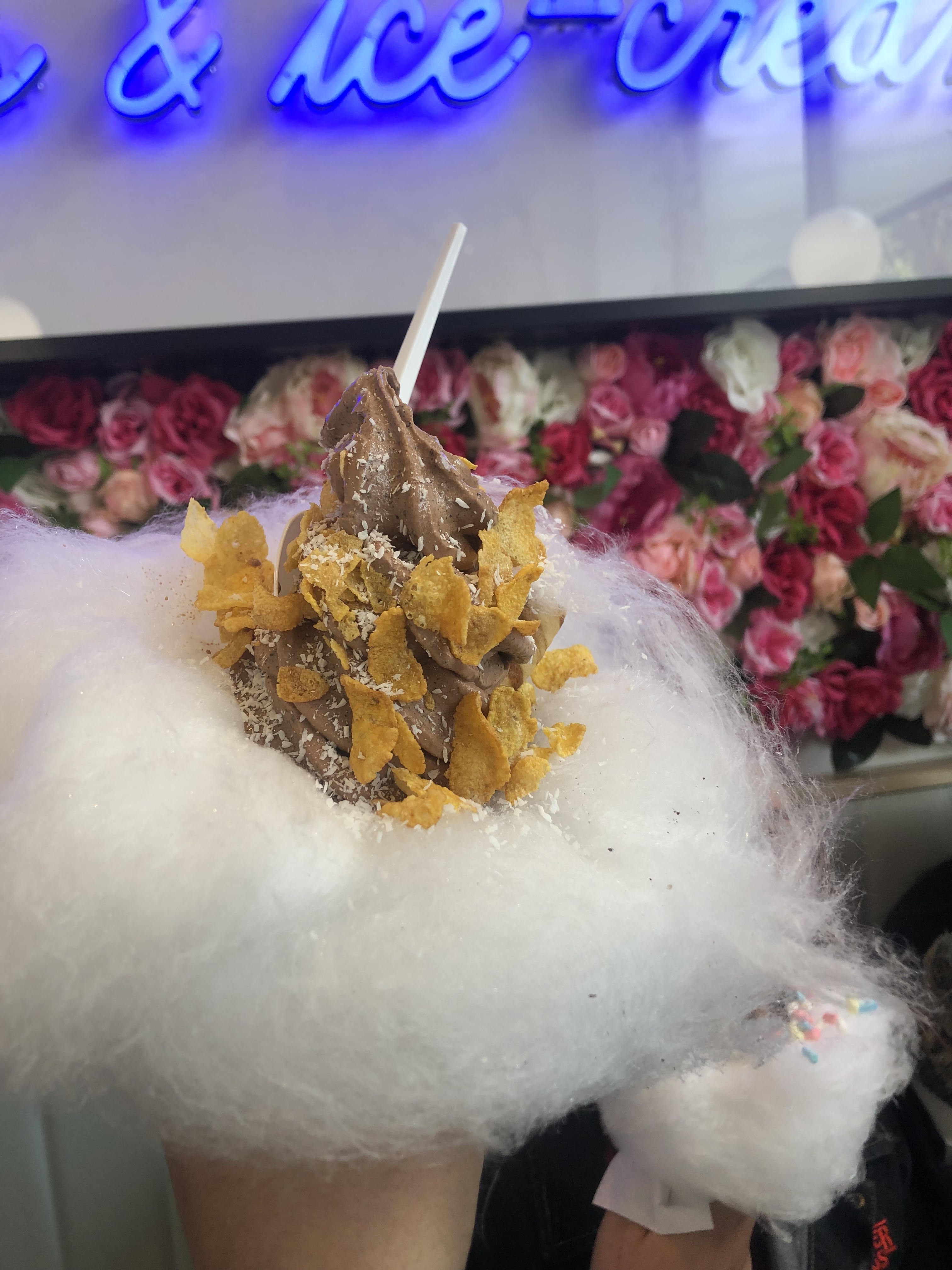 I went for a ‘make your own’ ice cream and decided on the Oreo crumbled into the ice cream and covered it in cornflakes an desicated coconut in a cone surrounded by candy floss (because I’m a commercial marketers basic dream). I must say for a fairly pricey seven quid, you could probably remake this at home for a fraction of the cost, but the expereicne and novelty of it is great.